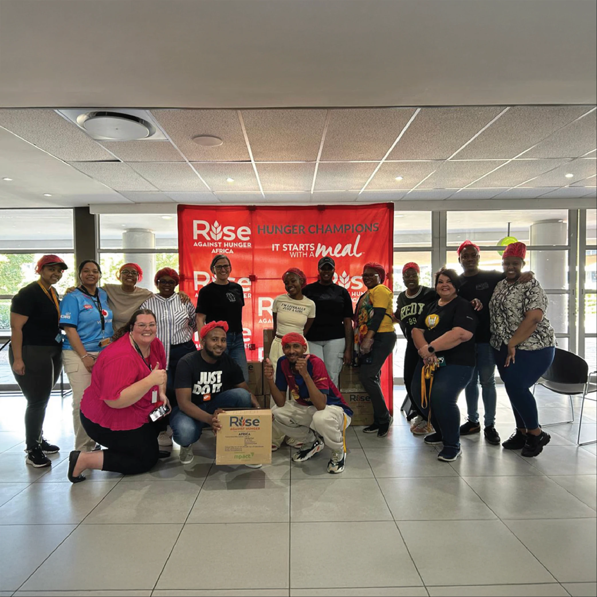 Through our collective efforts, we’ve helped ensure that 63 children under the age of 6 are fed every day for a year at school. This means that we were able to pack 68 boxes – that’s 14 688 meals in total, which will be distributed to schools across Gauteng.
